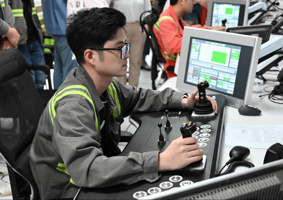 参观信息一体化智慧平台的过程中,港区的操控人员向我们详细介绍了无人码头生产作业流程与智慧化码头建设情况,使同学们直观感受到数字化在港口物流装卸、运输、仓储等各类场景中的应用,深刻体会到数字化技术使港口建设更智慧、集约、高效、绿色、安全。