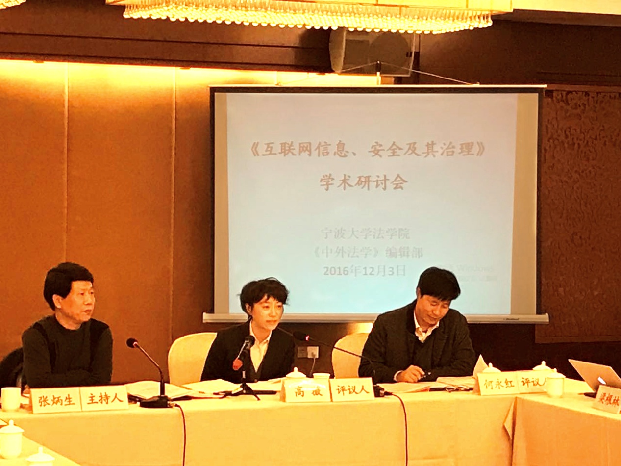 与《中外法学》 编辑部共同主办的“互联网信息、安全及其治理”学术研讨会在宁波金港大酒店隆重举行。本次会议共收到北京大学、清华大学、浙江大学、中国人民大学、上海交通大学、北京师范大学、武汉大学等全国各高校师生近70篇的投稿文章,经专家的严格评议,最终遴选出26篇文章参与此次会议研讨。会议特别邀请了北京大学六合彩