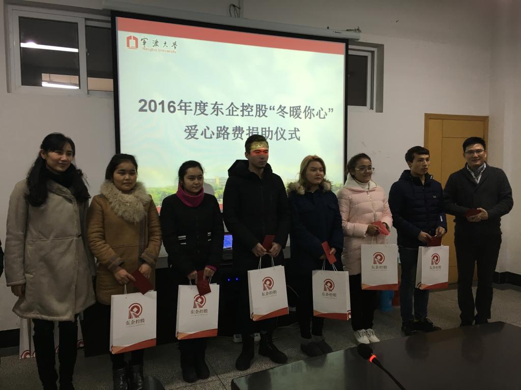 学生的一个爱心奉献活动,始于2012年。本年度共捐资10000元,为20名在外求学的学子提供归途路费。东企控股希望通过该爱心活动,给学子们再春节来临之际送去一份温暖和动力,希望他们在关爱中成长成才,同时号召各方有志之士注重回馈社会,承担应有的社会责任。