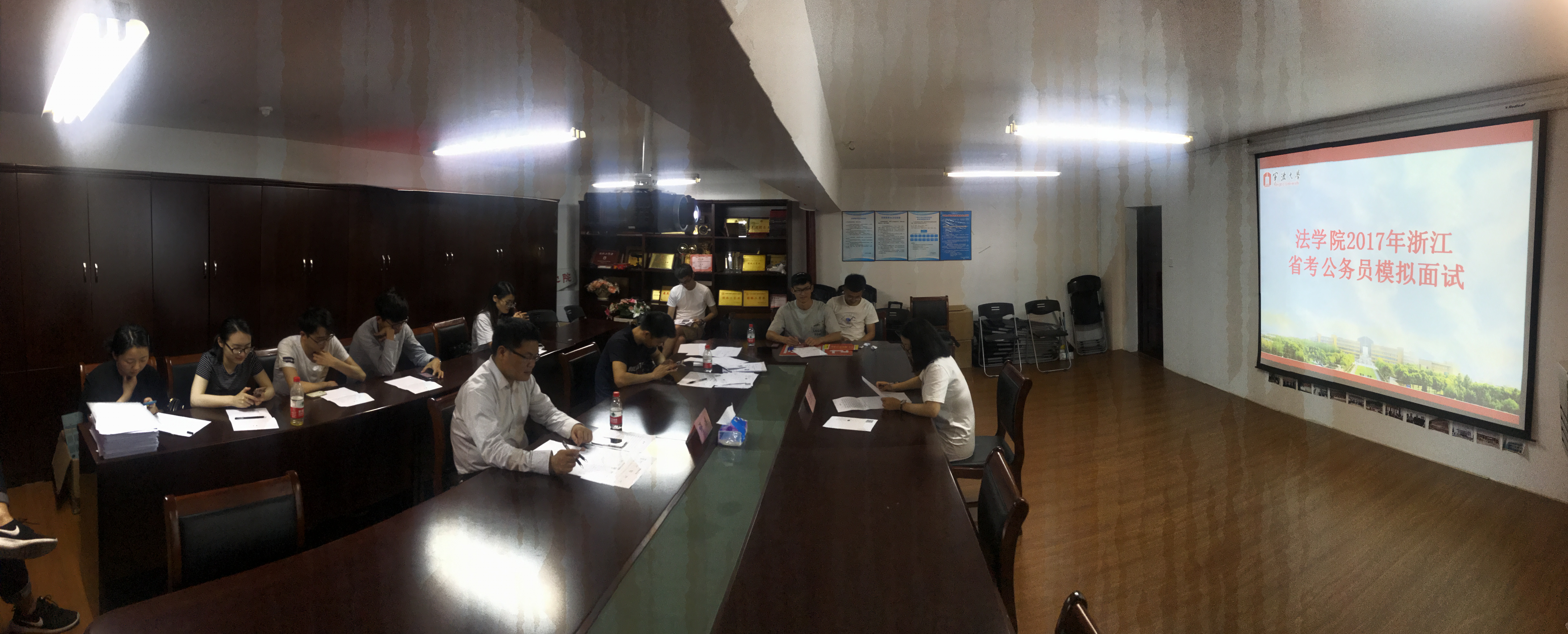 在学院报告厅举行了2017年浙江省省考公务员模拟面试活动。共有十位进入面试环节的同学参加了本次模拟活动。