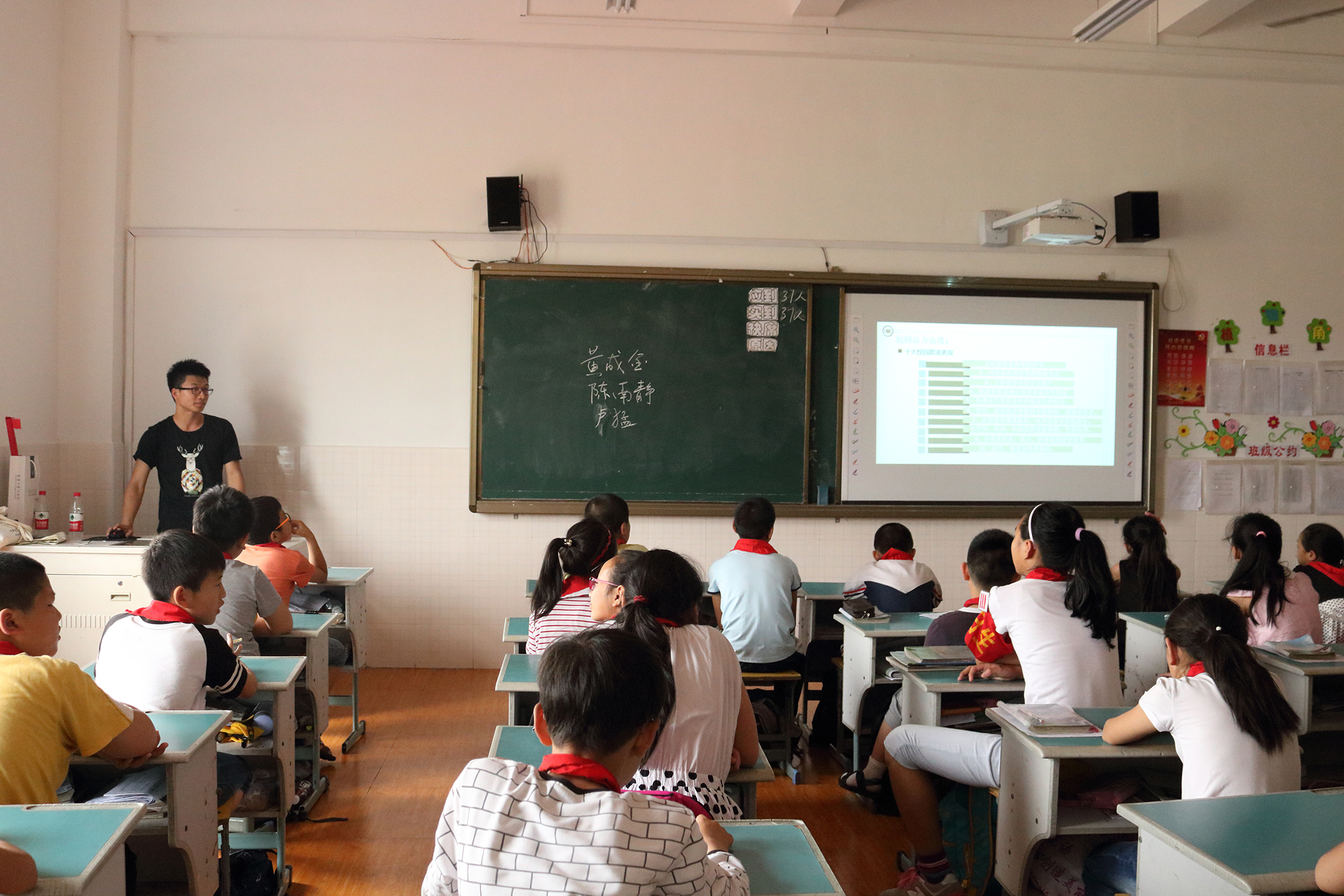 学生党员们以“如何保护自己”为主题,以《未成年人保护法》为切入点,结合生活案例讲解受教育权在内的未成年人享有的法律权利。结合当下屡见不鲜的校园欺凌现象,学生党员们与学生们进行了交流和探讨,并以问答互动的方式调动孩子们参与活动的热情和积极性,加深对校园欺凌的认识,防微杜渐,从身边做起。活动现场气氛热烈,孩子们更是主动和学生党员们分享此次主题班会的感悟,要学会用法律的武器保护自己。