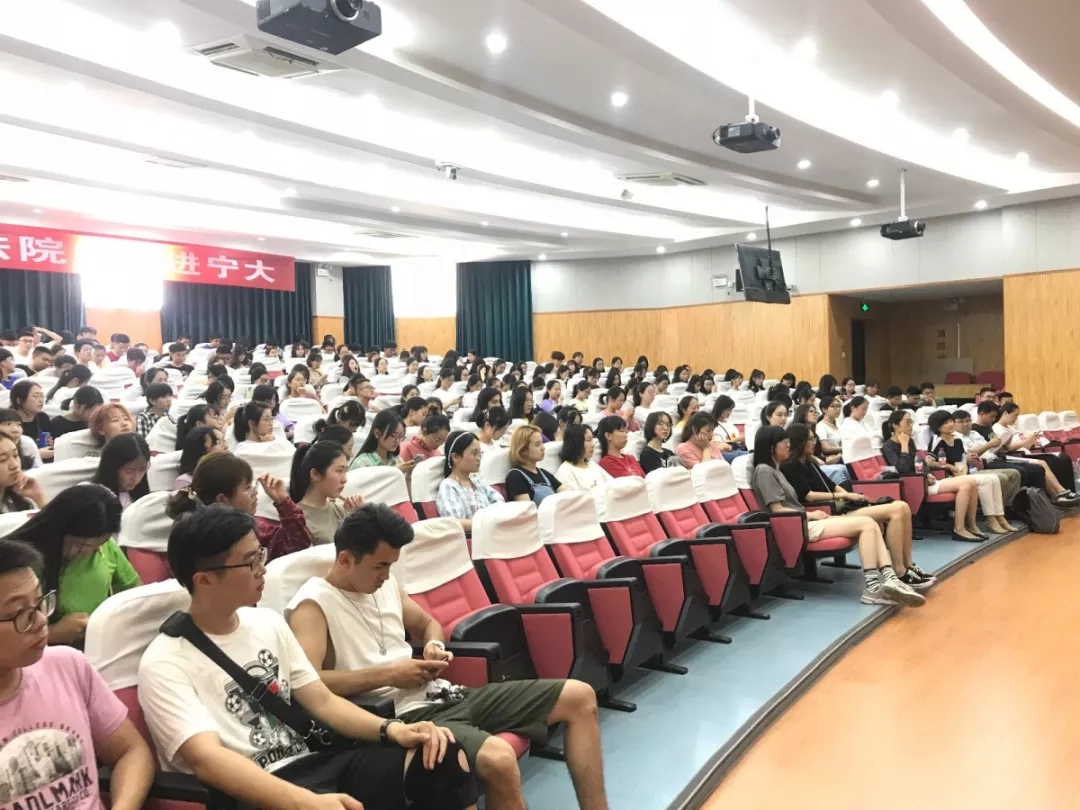 大家庭,向大家介绍了学院的一些概况,同时以“2019,向着美好生活我们一起出发”为主题,结合自身经验,从“寻找目标、努力奋斗”和“发展友谊,培育爱情”两个大方面进行了精彩分享。