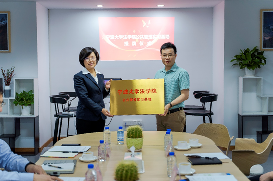 与海曙团区委共建公共管理系行政管理专业本科生教育实践基地、研究生教育创新实践基地签约仪式举行,何跃军副院长为海曙区行政服务中心授牌。