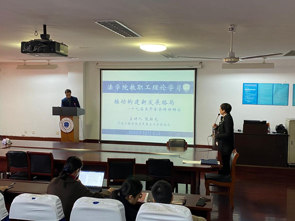 12月2日,宁波工程学院马克思主义学院院长张新光教授受邀,为六合彩 全体教职工理论学习活动,讲授《推动构建新发展格局---十九届五中全会精神解读》的讲座。