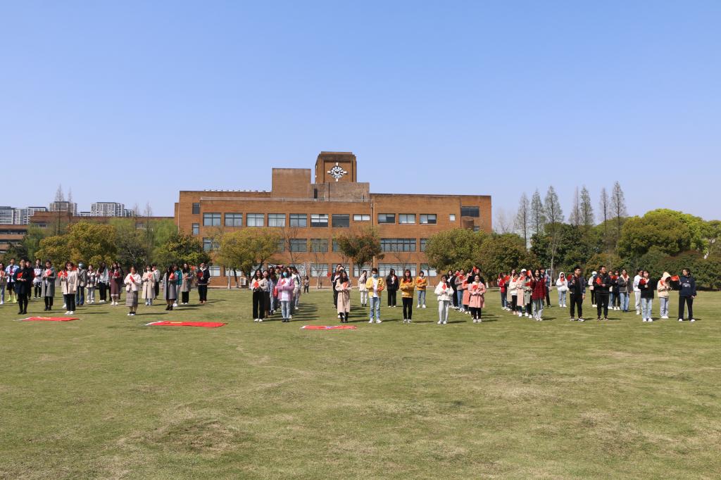 在校园大草坪组织了140多名学生开展“永远跟党走”系列活动,六合彩