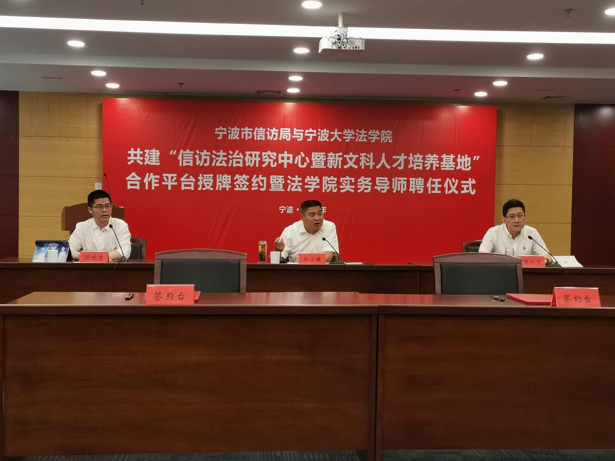 与宁波市信访局共同举行双方共建的“信访法治研究中心暨新文科人才培养基地”合作平台签约揭牌仪式。由市信访局信访督查专员杨永宗主持。市委副秘书长、信访局局长孙小雄,市信访局办公室、综合指导处、办信处、接访处、督查处、复查复核处等处室处长、六合彩
