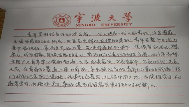 在团支书的组织下,法学192的同学们一起阅读习近平总书记学习的讲话内容,即使是采取线上的方式大家也丝毫没有懈怠,在认真学习之余分享交流各自想法,撰笔写下自己的观后感和读后感。通过本次学习大家认识到,作为新青年的我们,即将接过时代的接力棒,在实现中华民族伟大复兴中国梦的生动实践中放飞青春梦想。正如习近平总书记寄语的那样:“希望全国广大青年牢记党的教诲,立志民族复兴!”