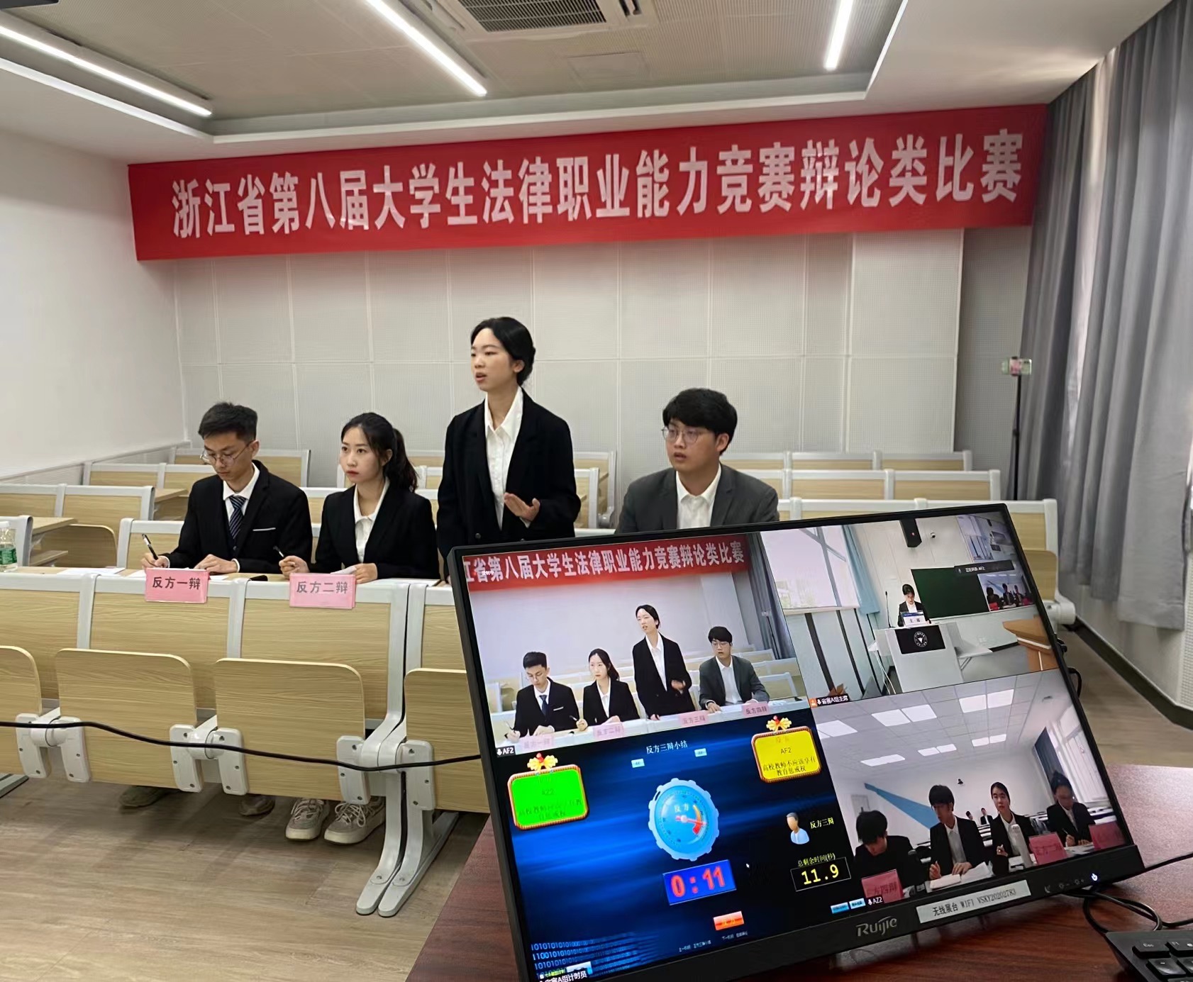 5月21日至22日,由浙江省教育厅、浙江省大学生科技竞赛委员会主办,浙江工商大学、浙大城市学院承办的浙江省第八届大学生法律职业能力竞赛(法律辩论类)竞赛通过腾讯会议平台线上举行。全省31所高校的32支队伍近300名法科学生参赛。竞赛分A、B两组,评审专家根据队伍表现打分,依据现场成绩确定奖项。