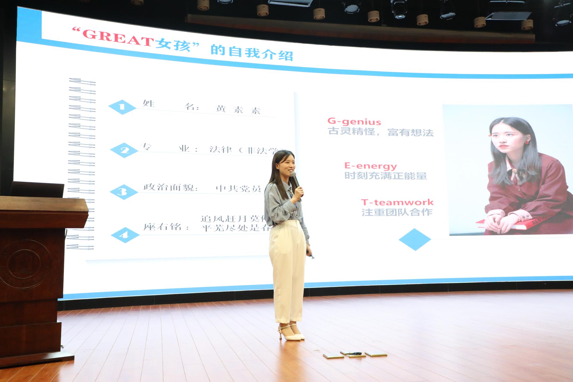2019级法律(非法学)研究生黄素素同学入围现场答辩评审。这位“GREAT”女孩,从自己的两段“双创”经历出发,与现场师生一同分享了研究生期间在校园文化活动、学生干部经历、实习实践、科研创新等领域的探索与收获。自信有力、亲和且富有感染力的展示赢得评委和现场师生的高度认可,最终入选获评六合彩