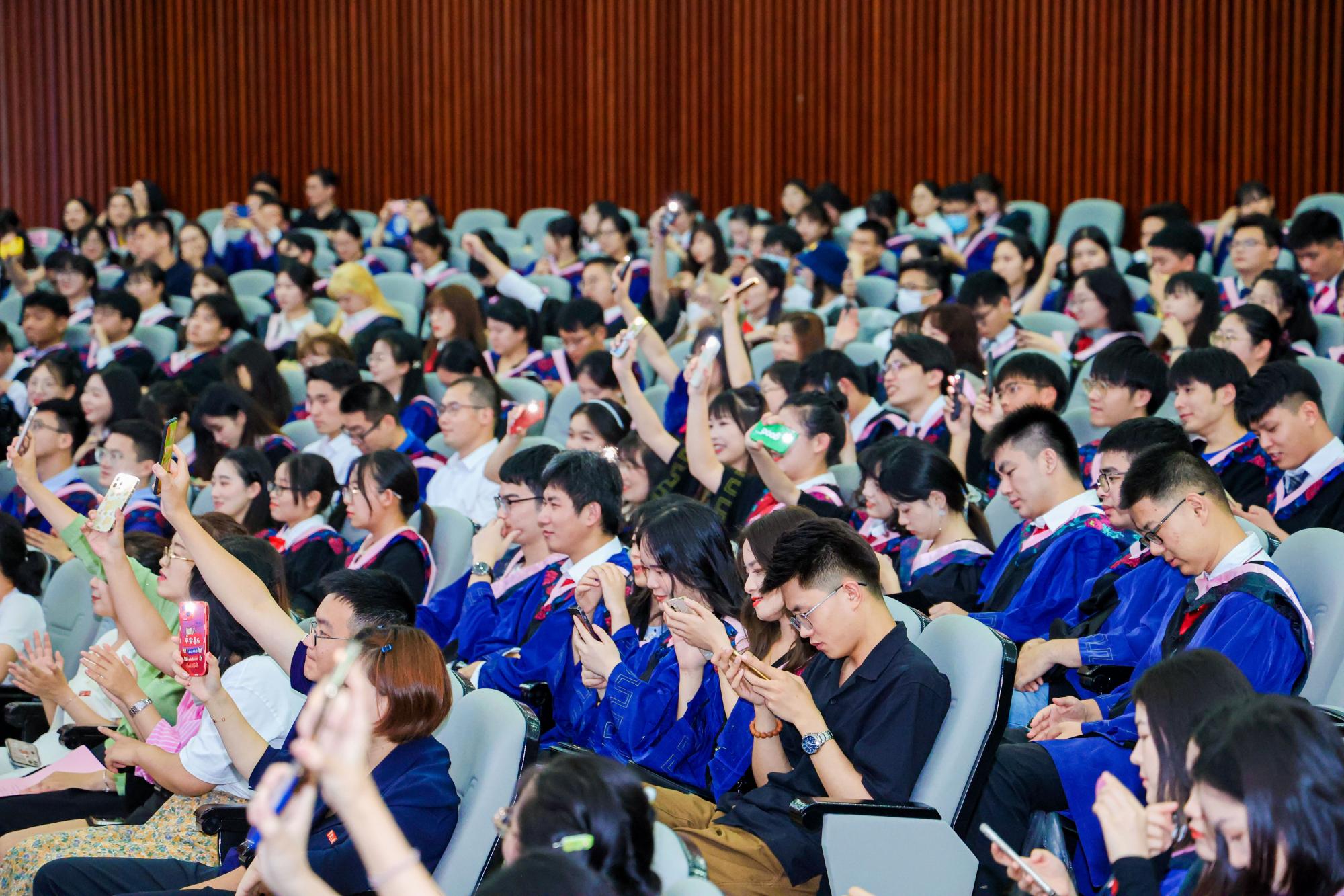 师生共聚毕业欢送。学院党政领导、各系(所)负责人、毕业班班主任、学院相关部门负责人、导师代表、全体2022届毕业生近400人参加了欢送会。欢送会由2018级本科生毕业生余函璐和2019级硕士研究生毕业生陈金阳主持。