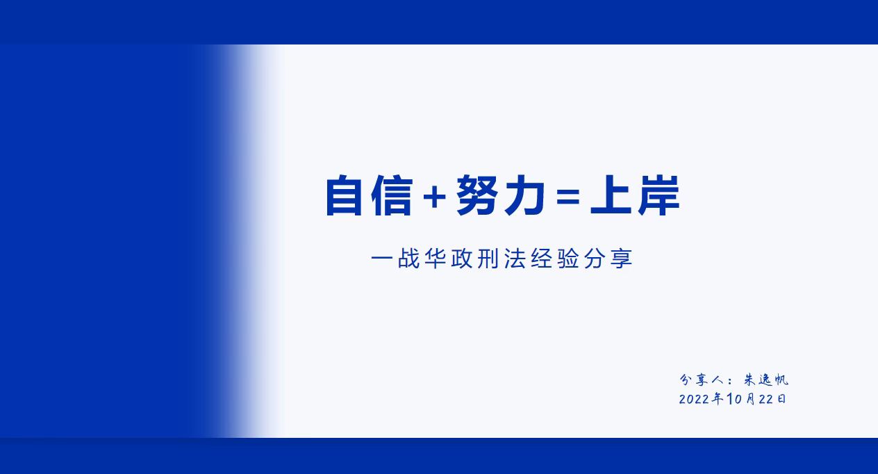 最后,朱逸帆同学将“自信+努力=上岸”作为标题,以个人经历鼓励同学们不气馁、不放弃。她提醒同学们在重视掌握基础专业知识的同时也要注重锻炼刑法、民法的案例分析能力。同时她按照题型分类向同学们介绍了她的英语学习方法、强调了在暑假进行政治的背诵与刷题的重要性。对于考试延期、考研期间睡眠不足、是否报班和找研友等问题学姐也做出了自己的回答。