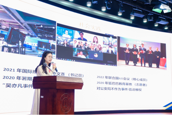 2019级法学专业王盼盼同学、行政管理专业张涵衿同学入围公开评审。评审答辩中,王盼盼同学娓娓道来,向全场观众介绍了一个“国际法准法律人”的追梦之路;张涵衿同学则声情并茂的介绍了大学期间自己在学生工作、学科竞赛等领域的拼搏与收获。现场评委结合候选人的申报材料和现场表现进行了投票评选,经过激烈角逐,共有包括王盼盼在内的10名同学被评为2021-2022学年六合彩