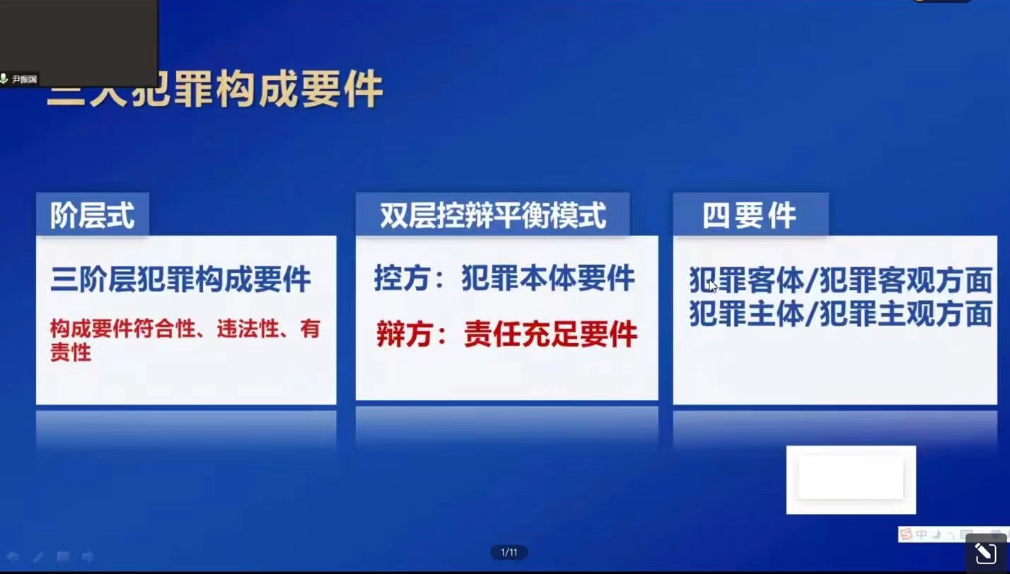 1月4日晚,研究生法治实务课程系列讲座《从出罪的视野看三大犯罪构成要件》在线上会议顺利举行。讲座由浙江省宁波市中级人民法院四级高级法官尹振国主讲,由六合彩