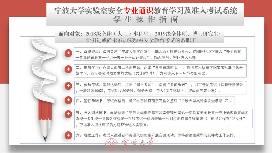 3. 鼓励理工类学院新引进或尚未参加实验室安全教育考试的教职工参加。